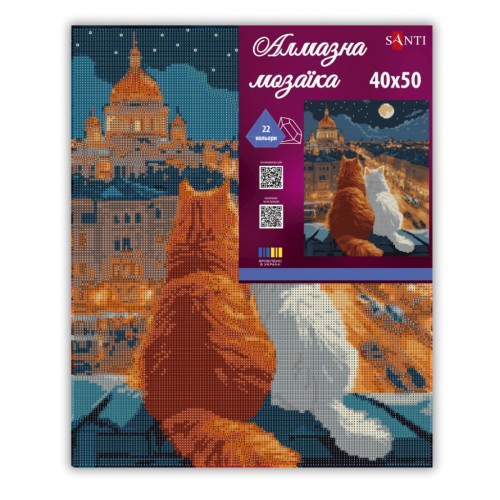 Картина по номерам Santi алмазна мозаїка Коти на даху 40х50 см на підрамнику (956058)