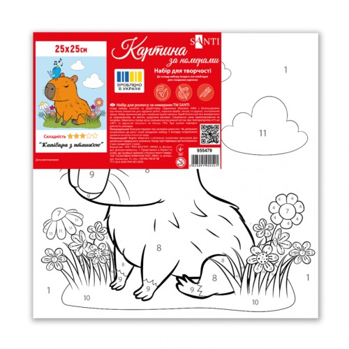 Картина за номерами ТМ SANTI "Капібара з пташкою" - це можливість подарувати дитині радість творчості, впевненість у своїх силах та нові знання!