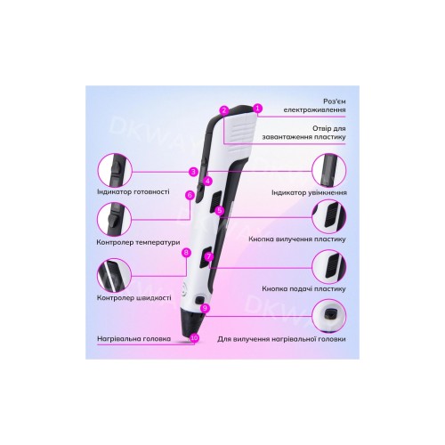 3D - ручка DKWAY з Планшетним Екраном з різнокольоровим Еко Пластиком 100 м (20 кольорів) White (415457583)