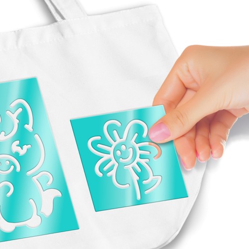 1. Нанесіть самоклеючі трафарети на сумку.   Помістіть один маркер всередину аерографа та натисніть, щоб створити візерунок.