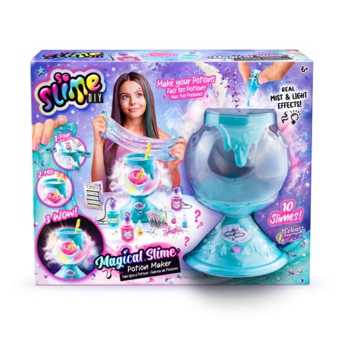 В НАБОРІ: 1 магічний котел; 3 шейкери-підвіски; 1 пакетик з масою (для 10 слаймів); 3 проявника кольору;
