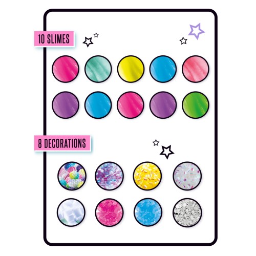 10 різнокольоворих баз для слаймів + 8 декорів = 100+ комбінацій длявашого задоволення!