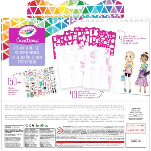 Crayola Creations пропонує дивовижні рішення для дівчаток від 6 років, щоб створювати, виражати себе та персоналізувати свій світ в оригінальний і творчий спосіб. Цей скетчбук містить 40 аркушів із попередньо надрукованими силуетами моделей, щоб полегшити роботу дизайнерампочатківцям або тим, хто хоче вдосконалити свою техніку малювання. Оскільки це знайомство вашої дитини зі світом модного дизайну, до набору також додано сторінки з інструкціями для допомоги та натхнення. Трафарети 50+ із формами модного одягу та аксесуарів дозволяють створювати різноманітні образи та стилі. Для завершення кожного дизайну можна додати кольорові наліпки з набору. Цей блокнот у спіральній палітурці чудово підходить для подорожей і легко поміщається в сумку чи рюкзак.