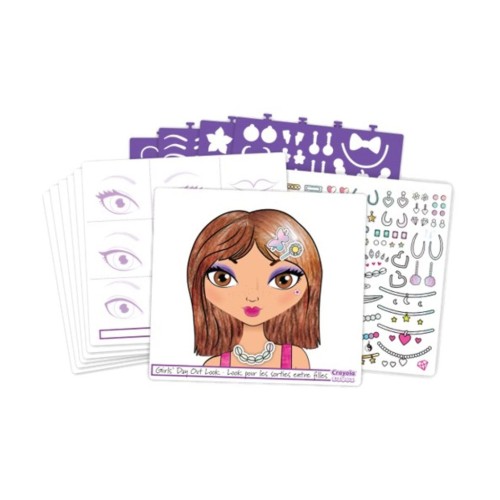 Набір для творчості Crayola Юний візажист надає дівчаткам чудову можливість спробувати себе у ролі візажиста! Створювати особливі образи тепер дуже легко та захопливо, використовуйте спеціальні трафарети і корисні поради щодо використання кольорів і відтінків і ви отримаєте неймовірний make-up! Для завершення образу можна додати кольорові наліпки з набору.