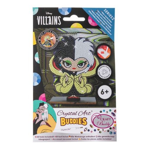 Ласкаво просимо у світ стильної та незвичайної творчості з набором Crystal Art, натхненним неповторною та загадковою Круеллою Де Віль! Набір для творчості Crystal Art Круелла – це втілення бездоганного стилю та ексцентричності Круелли. Комплектація набору Crystal Art Круелла: дерев’яна фігурка персонажа з липкою основою, кристали для декорування фігурки, спеціальна ручка, таця для кристалів, віск, пакетики для зберігання зайвих кристалів, дерев’яна підставка для фігурки Цей набір надає дитині свободу виражати свою індивідуальність та стиль. Якщо ваша дитина любить збирати вироби руками, набір Crystal Art Круелла стане ідеальним подарунком. Набір для творчості Crystal Art Круелла дозволить створити витвори мистецтва, які будуть не лише прикрасою дитячої кімнати, а й яскравим втіленням дитячого індивідуального стилю!