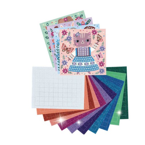 Набір для вивчення мистецтва мозаїки. 4 дизайни, які треба доповнити маленькими шматочками блискучої піни, що працюють як наклейки.