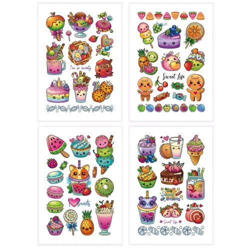 Набір татуювань Солодкі мрії містить чотири аркуша з милими картинками, та набір дуже простий у використанні. Усі ілюстрації якісні та оригінальні.