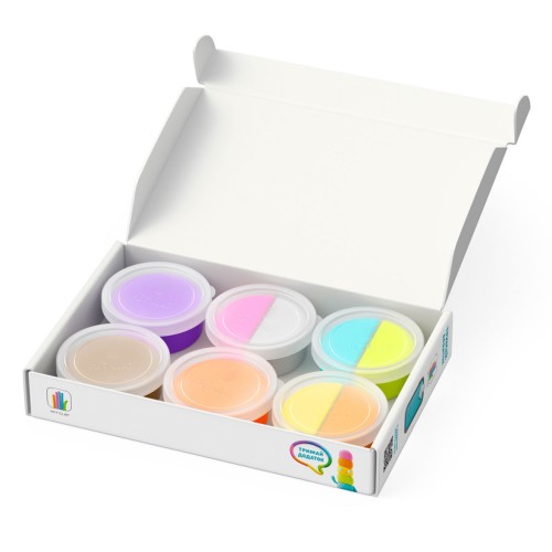 • В набір може входити до 9 різних кольорів (баночка може містити пластилін двох різних кольорів).
