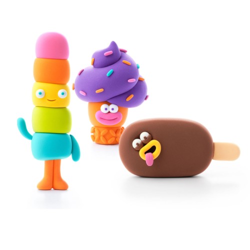 Набір пластиліну, що самостійно твердіє, ЛІПАКА – ФАЙНІ МОРОЗИВКА: ТЕПЛЬОДИК, ТОРНАДИК, ЧОКО БРО – розважить і малюків, і дорослих. За допомогою анімаційних інструкцій в додатку HEY CLAY, Ви зможете зліпити трьох кумедних героїв. Пластилін твердіє на повітрі протягом 24 годин, після чого можна гратися створеними фігурками.