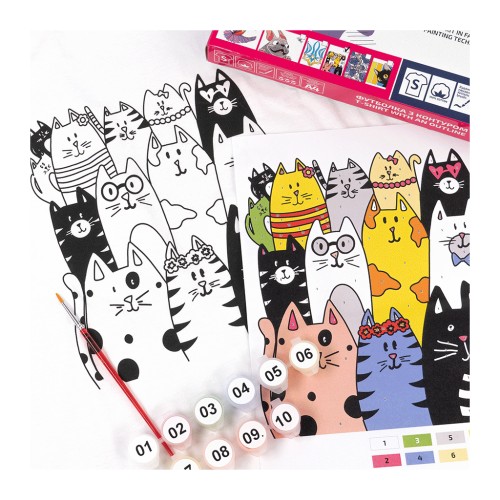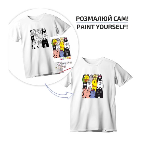 Набір для творчості Rosa футболка-розмальовка, Котики, бавовна 100, розмір S (4823098542100)