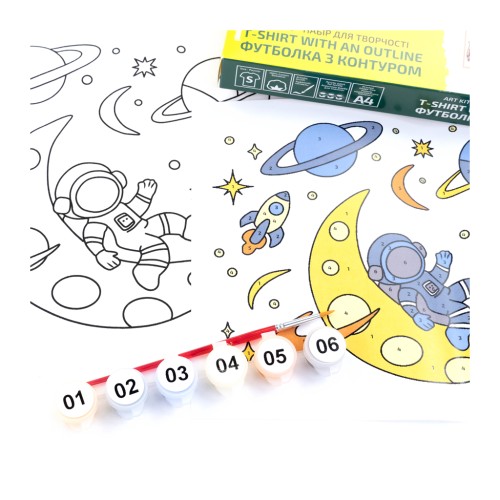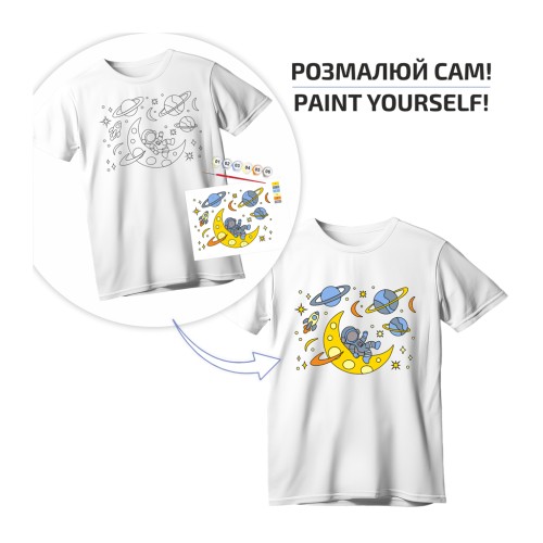 Набір для творчості Rosa футболка-розмальовка, Space Adventures, бавовна 100, розмір S (4823098543817)