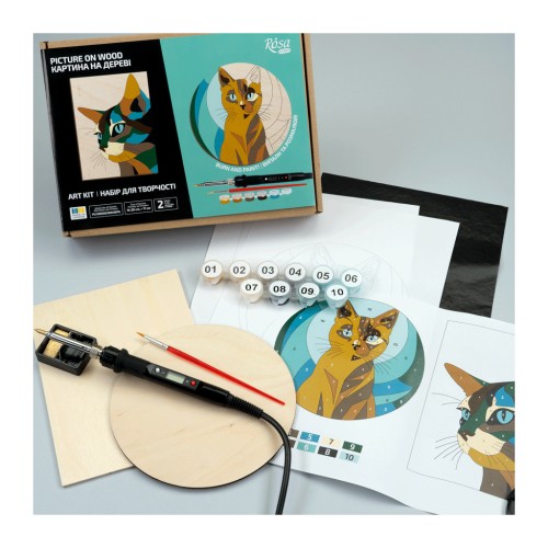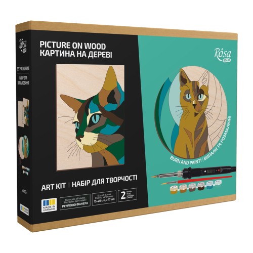 Набір для творчості Rosa Start Cats випалювання картини на дереві, з фарбами, в коробці (4823098544708)