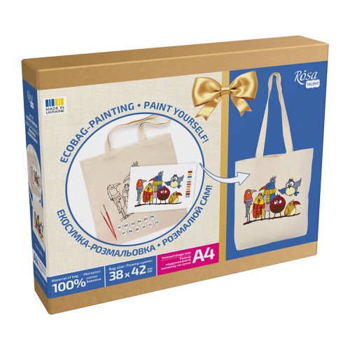 Екосумка ROSA Talent– виготовлена зі 100% бавовняної тканини. Щільний якісний матеріал та надійна фіксація ручок дозволяє витримувати навантаження вагою до 15 кг. Розпис екосумки ROSA Talent - надзвичайно захоплюючий та водночас легкий процес, адже контури малюнку вже нанесені на основу. Розписана власноруч сумка стане яскравим стильним та практичним аксесуаром, що доповнить щоденний образ!