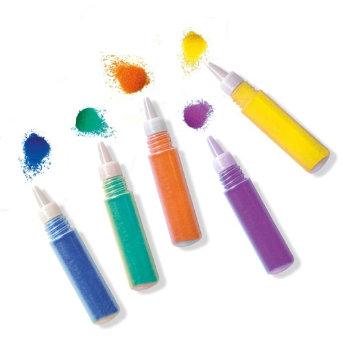 5 тюбиків з кольоровим піском, 4 картки з наклейками, інструкція.
