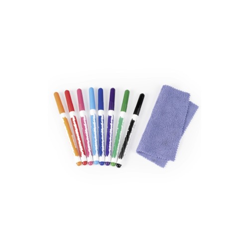 Саме тут маленькі художники можуть проявити всю творчість та створювати нові барвисті витвори мистецтва за допомогою набору кольорових маркерів на водяній основі, які комплектуються, та завдяки поверхні, яку можна використовувати безліч раз.