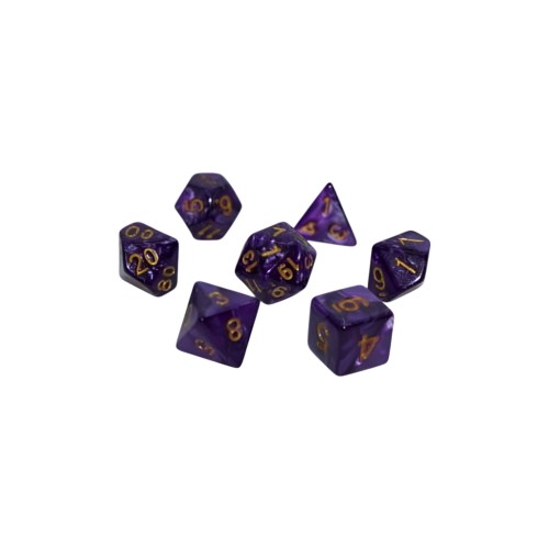 Pearl 7 Dice Set - Dark Purple (w-gold)