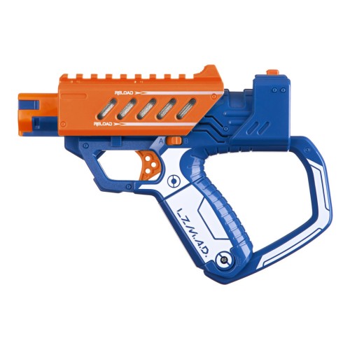 «Подвійний набір» Laser M.A.D. з двома базовими моделями бластерів та двома мішенями призначений для екіпіровки двох гравців. З двома бластерами можна влаштувати справжній бій. Діапазон стрільби – 15 м. Бластери мають автоматичну систему перезарядки та реалістичні звукові ефекти лазерної стрілянини. Передбачено два режими гри: битва або тренування. Для роботи необхідно 12 батарейок типу ААА (не входять в комплект).