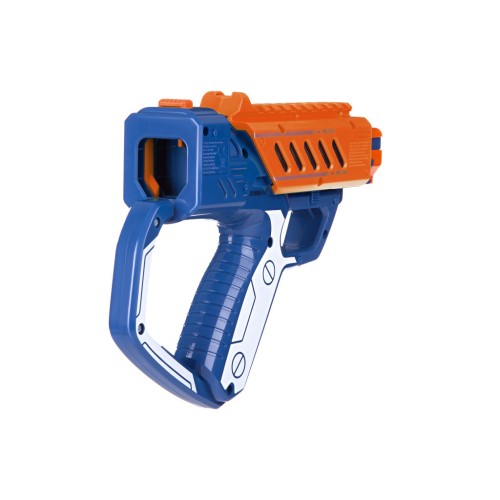 звукові ефекти; світлові ефекти; одно попадание отнимает одну жизнь, всего их дается 5; 2 режима игры: соревнования и тренировка; кнопка включения находится у рукоятки; на грудь участнику крепится мишень; индикаторы оставшихся выстрелов; имеет автоматическую систему перезарядки; стріляє на відстань до 15 метрів