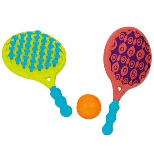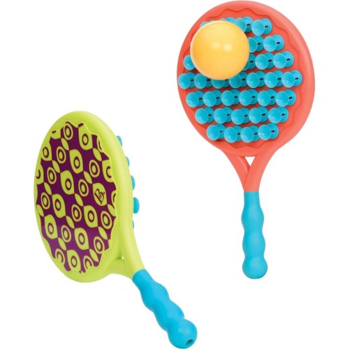 Зловіть м'ячик і відкріпіть його від липуууучок. Чвяк! Легкий м'ячик прекрасно прилипає до безлічі маленьких гнучких липучок. Переверніть ракетку іншим боком і відбивайте м'ячик. Бум!