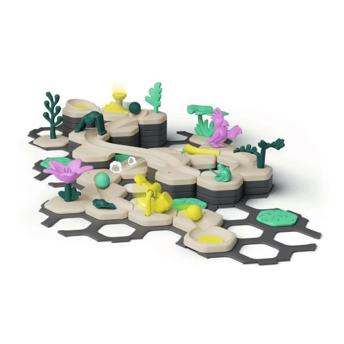 Цей стартовий набір надає вашим маленьким інженерам можливість увійти до світу GraviTrax Junior з тематикою джунглів. З різноманіттям елементів, натхненних тропічними пригодами, ваша дитина вирушить у подорож створення власних трас, де кожен поворот приносить нові відкриття.