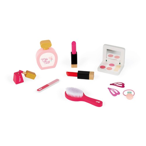 туалетний столик, 10 аксесуарів (1 гребінець, 2 затискачі для волосся, 1 гумка для волосся, 1 флакон духів, 1 палетка для макіяжу, 1 пилочка для нігтів, 1 лак для нігтів, 2 помади)