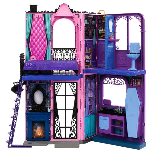 Готель має п’ять ігрових зон для гри з усіх боків та понад 13 елементів інтер’єру й аксесуарів, щоб вигадувати страшенно стильні історії знову й знову. Від місця для трапези до горища — тут усе дихає атмосферою Monster High.