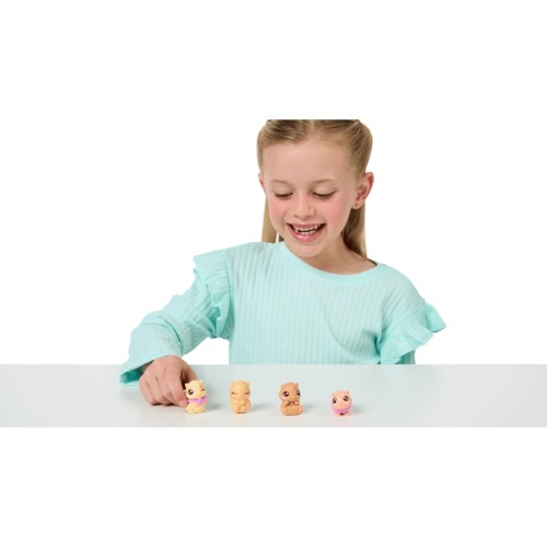 За допомогою невеликих хитрощів можна організувати повторне народження малюків- знову відчути насолоду від турботи про маму, подив від народження її малюків та головне - подарувати хвилини щастя своїй дитині. Потурбуйся про хом'яка, нагодуй її, а потім поклади відпочити. Зрештою у тваринки  чарівним чином з'являться діточки! Скільки малюків ви знайдете? Усього їх може 2,3 або 4. Кожна дитина унікальна. Знайдіть милі крихітні аксесуари, такі як бантик і нагрудник, щоб одягнути своїх малюків.