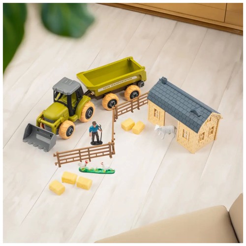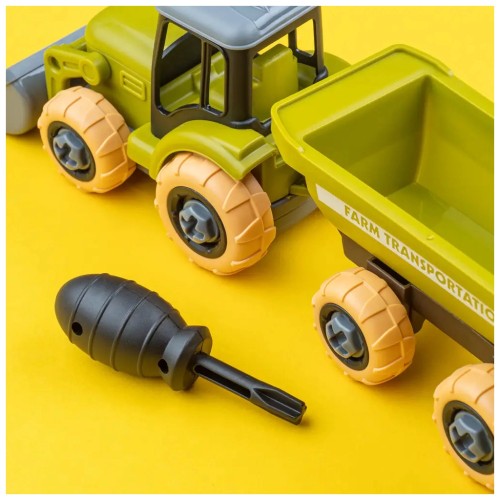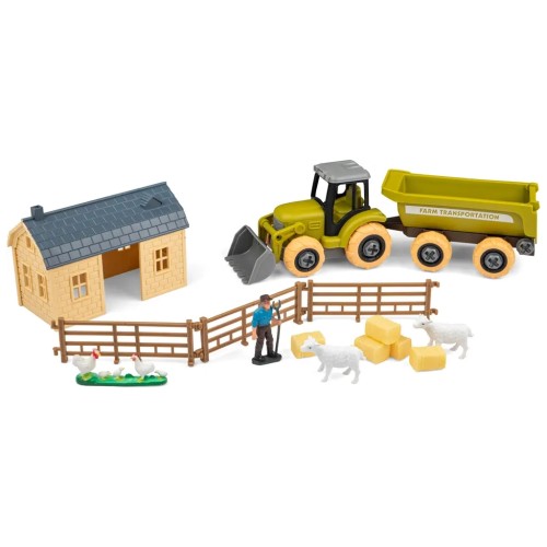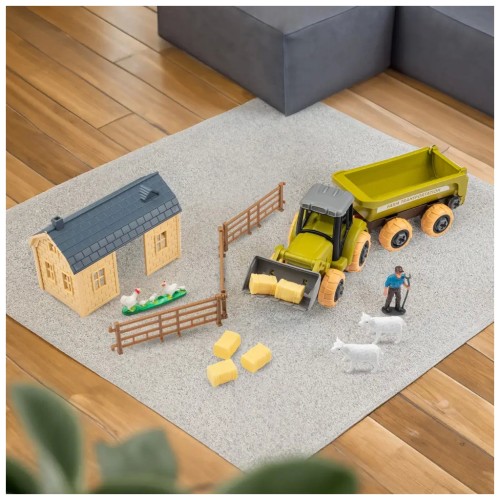 У наборі є все для справжньої сільськогосподарської пригоди: комбайн з причепом, яким можна управляти, збираючи врожай, і фігурки фермера з його вірними тваринками, що завжди готові допомогти. А ще тут є викрутка, з якою ваш малюк зможе самостійно збирати та розбирати техніку, як справжній механік.