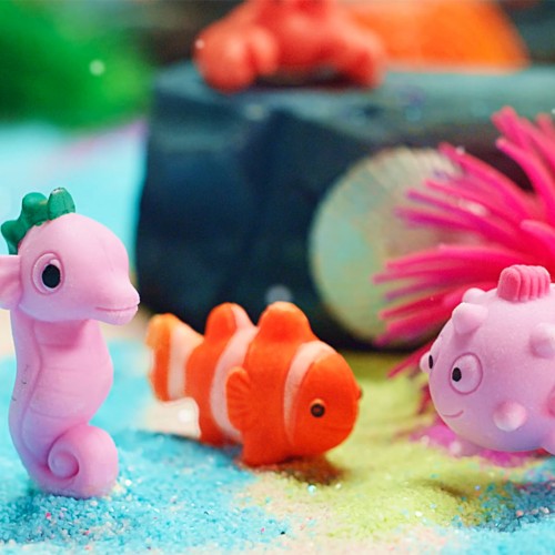 ЖИТЕЛІ ТРОПІЧНИХ МОРІВ – нова колекція іграшок, що зростає, в яйці. Риби та тварини тропічних морів вражають уяву своєю різноманітністю. Тепер Ви можете дізнатися багато нового про довгоголову черепаху, морську зірку та рибу-папугу. На що ж Ви чекаєте? Купуйте та колекціонуйте їх всі!