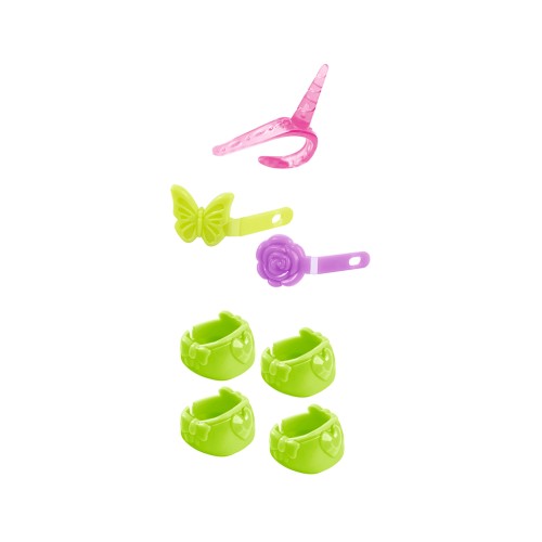 У них великі виразні очі, до набору входить: обруч єдинорога, набір підков, аксесуари для зачісок, гребінець.