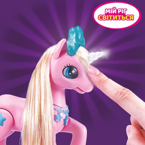 • Іграшка реагує на дотик - погладьте носик єдинорога, і почуйте справжні звуки єдинорога!