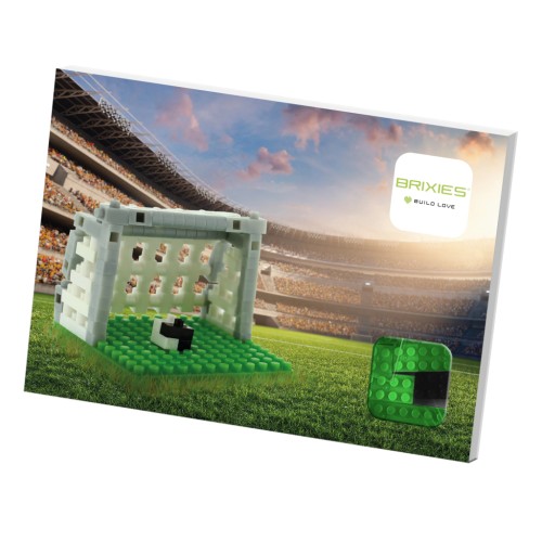 Особливістю цього конструктора є його формат 3D вітальної листівки, яка вміщує всередині сюрприз — 142 деталі, з яких можна скласти оригінальний футбольний аксесуар, що точно повторює зображення на зовнішній сторінці. Додайте особисте вітання, щоб зробити листівку ще більш особливою.