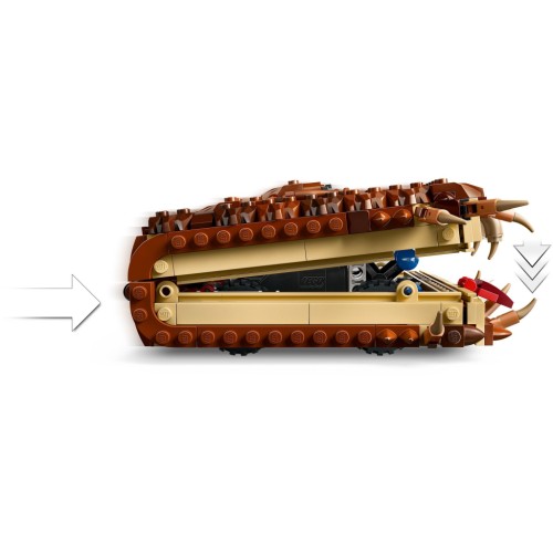 Модель має приховані колеса і функцію від'їзду назад , просто покладіть її на рівну поверхню, відтягніть назад, відпустіть і спостерігайте, як вона мчить геть, роззявивши пащу.