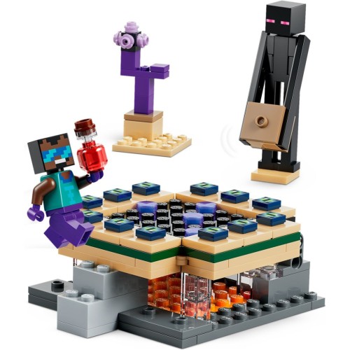 Унікальність набору полягає в інтеграції деталей біомів та автентичних аксесуарів з гри, таких як чарівний лук і лікувальне зілля. Діти можуть поринути у захопливу пригоду, проходячи крізь портали та досліджуючи різноманітні біоми разом із мініфігуркою Cool Hero та фігурками Ендермена і маленького хоґліна.