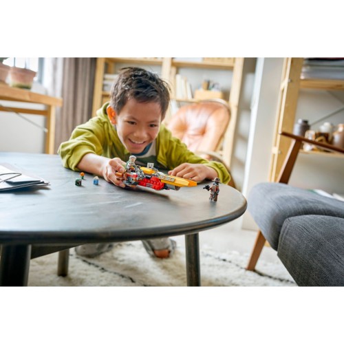 Пориньте у світ «Зоряні війни» і створіть деталізовану модель спідера, яку ви бачили у другому сезоні серіалу «Мандалорець». Ваша гра стане більш захопливою завдяки спеціально розробленому місцю для фігурки Кобба Ванта зі зручним водійським сидінням і кріпленням для пістолета. Унікальною особливістю є прихований відсік, що зберігає легендарні аксесуари, такі як шолом Боби Фетта та пакет з молоком банти.