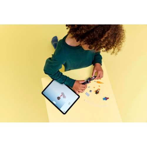 Павутина мініфігурки Людини-павука кріпиться до мотоцикла, відкриваючи безмежні можливості для сюжетних ігор, коли герої борються на цьому потужному транспортному засобі й поряд із ним.
