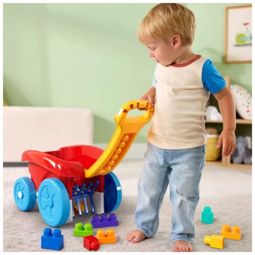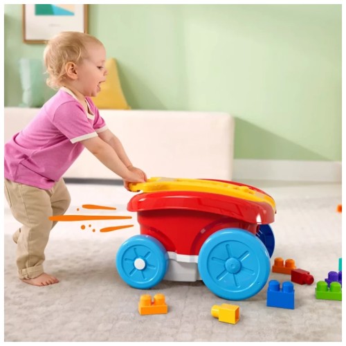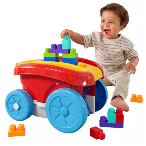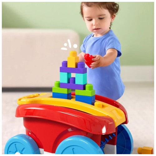 Розвивальна іграшка Mega Bloks Візок для збирання кубиків допоможе малюкам зробити свої перші великі кроки у захопливий світ творчості та конструювання!