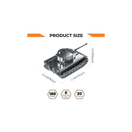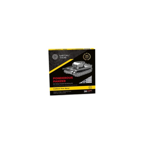 "Metal Time" запрошує вас поринути в історію легендарних бойових машин з модульною моделлю "Важкий танк". Модель зберегла всі оригінальні риси "Тигра", включаючи "шахове" розташування катків, форму корпусу та башти, командну вежу та гармату. Гусениці, що складаються з окремих траків, додають реалістичності та змушують добряче попрацювати при складанні. Танк оснащений пружинним двигуном і може долати невеликі перешкоди під час руху.
