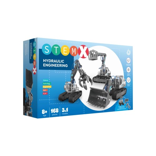 Конструктор Stem 3 в 1: Гідравлічні машини — це унікальний набір, який пробудить інтерес до інженерії і технічних навичок у кожного хлопчика віком від 8 років. Набір складається з 168 високоякісних пластикових деталей, з яких можна зібрати одну з трьох моделей гідравлічної техніки: бульдозер, краб або пожежна машина.