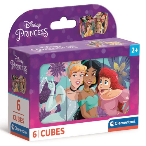 Кубики-пазл Clementoni "Princess" – набір із 6 кубиків для створення 6 різних зображень чарівних принцес Діснея – Белль, Попелюшки, Моани, Жасмін, Рапунцель та Аріель .