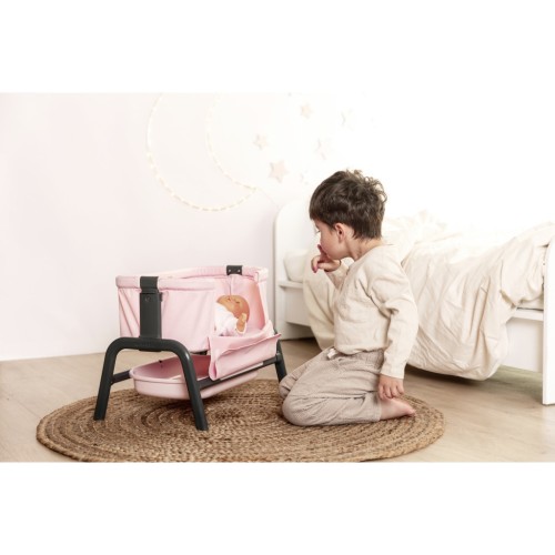 Завдяки бічній стінці, що легко опускається, ліжечко можна зручно підставити до дитячого ліжка, і контролювати сон улюбленої лялечки, так само як мама або тато своєї дитини. Також під ліжечком є пластикова поличка для зберігання речей і аксесуарів для малюка.