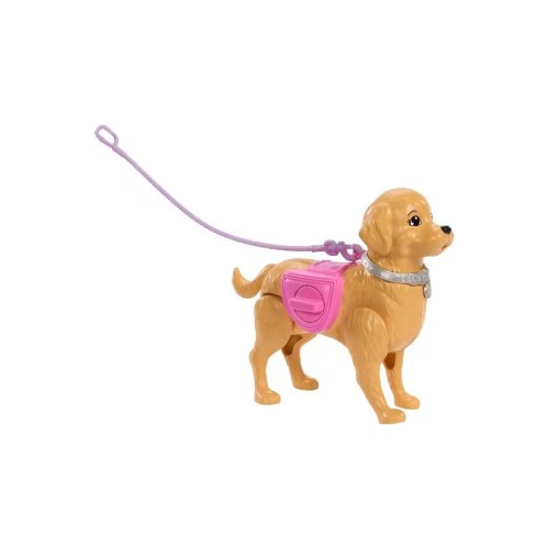 Barbie Malibu «Прогулянка з собачкою-чистюлею» — це іграшка, яка поєднує рух, догляд і безліч радості. Лялька одягнена в кольорову сукню в квіточку і рожеві туфельки, а супроводжує її чарівний песик, який вміє справді ходити і справляти свої потреби – достатньо повернути ручку на його боці і потягнути за повідець, щоб він рушив уперед.