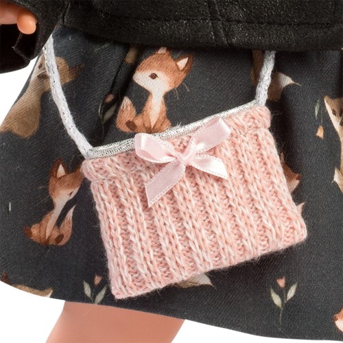 Ця чудова лялька стане улюбленою забавкою вашої дитини. Карла виглядає як справжня жива дівчинка з довгим прямим волоссям світлого кольору й сірими виразними очима. Вона одягнена в рожево-синю сукню із зображенням лисенят на спідничці, корну кофтинку, в'язані шкарпетки, шапку та хомут рожевого кольору. Довершує образ Карли маленька в'язана сумочка через плече. Руки, ноги й голова ляльки зроблені з приємного на дотик вінілу, а живіт заповнений м'якою підкладкою.