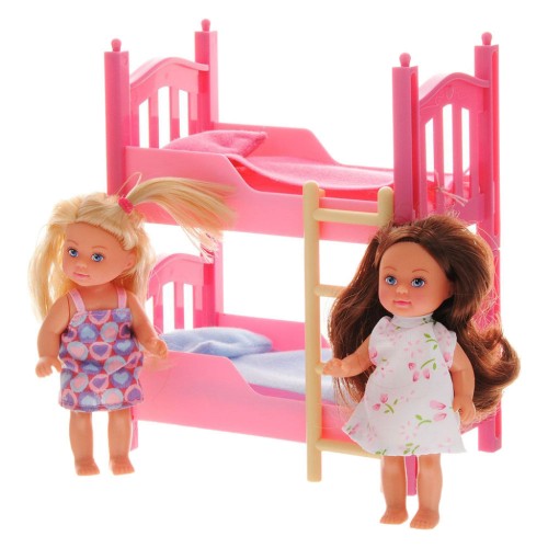 Єва та її подружка люблять ночувати одна у одної. У набір входить 2 ліжечка, які можна скласти, як двох'ярусне ліжко або ж окремо. Також у комплект входять дві ляльки та аксесуари.