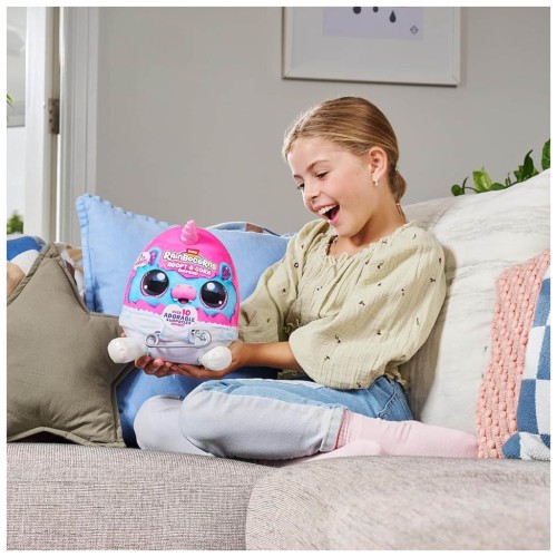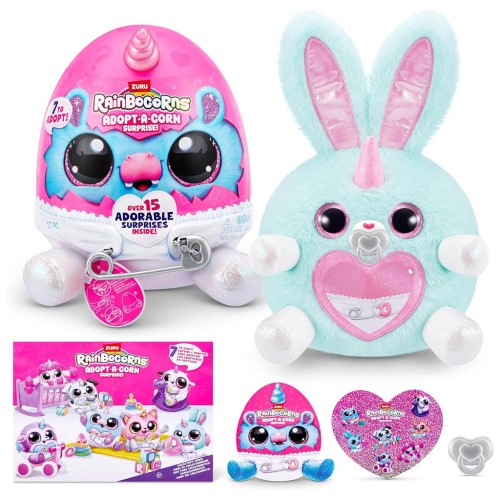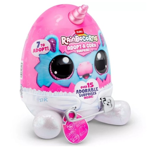 Таємниця маленького дива! Розкривай яйце-сюрприз та зустрічай наймилішу м'яку іграшку-немовля, яка так чекає твоєї турботи! В комплекті є все необхідне для перших днів немовляти: шпилька для пелюшок, соска, свідоцтво про усиновлення та інше. Проявляй турботу та насолоджуйся теплими митями з іграшкою Rainbocorns Adopt-a-Corn Surprise!