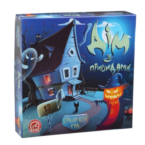 Настільна гра Arial Будинок із привидами для 2-4 сміливих гравців, які нічого не бояться: ані монстрів, ані привидів. Гравцям пропонується відвідати загадковий старовинний будинок. Будинок, наповнений примарами та привидами. І тут тільки одне з двох: або монстри заселять весь будинок, або ваша відважна команда зловить і прожене їх. Але будьте обережні !!!! Якщо не діяти разом, примари швидко схоплять вас. І тоді ніхто не зможе вийти назад. Це захоплива командна гра, у якій успіх залежить від усіх учасників. Гра з простими та зрозумілими правилами, універсальна за віком, розвиває логічне мислення і кмітливість.