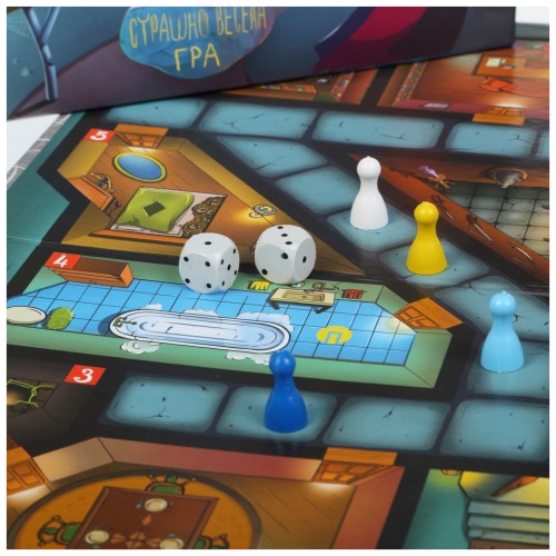 ігрове поле,, фішки з привидами, фішки звичайні – 4 шт., кубики – 2 шт., правила