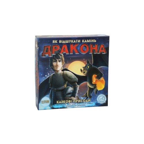 Казкові пригоди. Як знайти камінь дракона: вирушай у захопливий світ, повний таємниць та загадок! - Вчителю, наш корабель набирає швидкість, і ми зможемо швидше долетіти до місця, де зник камінь дракона. Ви взяли із собою книгу заклинань? Адже лише з її допомогою ми переможемо зло, яке наповнює нашу планету. Знайдемо код доступу до механізму у Святилищі, що знаходиться високо у горах - Так, любий мій друже. І зможемо допомогти людям повернутися на землю, яка була в полоні зоряного царя Еміра. - Вчителю, подивіться там ще три кораблі, і вони рухаються у нашому напрямку. – Це кораблі царя Еміра. Додай ще більше ходу і нехай нам супроводжує Удача! Готові до насиченої пригоди? Тоді швидше кидайте кубик! Настільна гра Пригоди казки. Як знайти камінь дракона занурить вас у світ пригод та авантюри. Адже корабель Мудрець має відірватися від погоні, дістатися до каменю і врятувати людей від поневолення. Також молодим мандрівникам доведеться пройти загадкові кільця, які постійно обертаються в різні боки. Героям чекає шлях, повний загадок та небезпек. Ця чудова пригодницька настілка створена за мотивами популярної серії книг Кресіди Ковелл "Як приручити дракона". Набирайтеся мудрості та логіки та повторіть чудові подвиги головних героїв! У грі беруть участь чотири гравці. Кожен отримує свій корабель-буєр та три карти з колоди. Спочатку їх кораблі розміщуються у чотирьох кутах. Якщо у першого гравця на кубику випадає від 4 до 6, то він переміщає свій корабель на будь-яку комірку. У решту ходів, крім першого, додатково використовуються ще й карти, які поділяються на два типи: картки бурштину вартістю – 1,5,10 та карти дій. Картки бурштину допомагають купувати карти та здійснювати стрибки на наступне кільце, до того ж вони проведуть вас захопливими маршрутами: карта “Супер швидкість” допоможе перелетіти на один сектор вище або повернути сектор ліворуч чи праворуч. Але якщо ви перебуваєте на третьому секторі, то тільки вправо або вліво; карта "Прокручування" за годинниковою або проти годинникової стрілки допомагає зробити прокручування кілець або вперед, або назад; карта "Викрадач" дозволяє вкрасти одну карту у противника, забираючи її собі; гравець, який втратив карту, використовує привілеї карти "Справедливість" і блокує карту "Викрадач", після чого обидві карти залишають гру. Якщо в ході гри у гравця на кубику випало число 6, то гравець перестрибує на наступний сектор або пересувається на шість осередків вправо або вліво і виконує дії того сектора, на якому він зупиниться. У грі є сім секторів: Чарівний стрибок, Вихор, Хмари небуття, Яйця Дракона, 10 одиниць Бурштину та Лабіринт рифів. Кожен сектор має свої секрети та силу. І звичайно, 4 кораблі ЄУРОН, МУАРІС, ГЕЛІС та ДРАКАР. Кожен із них наділений особливою силою та привілеями, які допоможуть виходити гравцям із різних ситуацій. Збирайте одиниці бурштину (картами та фішками), йдіть сміливо вперед, і успіх посміхнеться вам. Ви знайдете камінь Дракона, керуватимете механізмом Вічності й переможете царя Еміра. Виграє той, хто збере першим 50 одиниць бурштину і дістанеться каменю Дракона. Казкові пригоди. Як знайти камінь дракона: тільки сміливим супроводжує удача! Настільна гра Пригоди казки. Як знайти камінь дракона дуже цікава, сповнена таємниць та загадок. Навчає бути сміливими, не боятися перепон, а йти 