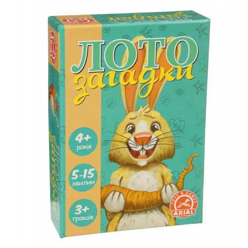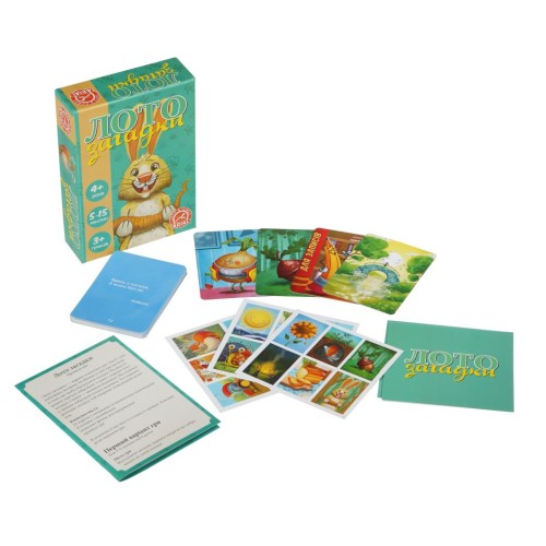 Варіант класичної гри "Лото" для кмітливих дітей. Особливістю цієї гри є те, що потрібно не знаходити цифри, або зображення, а відгадувати загадки. У комплекті гри 25 двосторонніх карток - з одного боку текст загадки, з іншого малюнок-відповідь. На плашках у гравців знаходяться тільки високохудожні авторські малюнки. Накриває відповідний малюнок той, хто першим розгадав загадку. Для дітей від 4-х років.