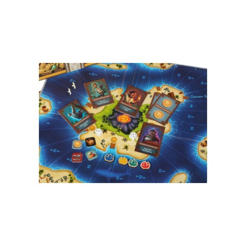 поле, інструкція, 44 карти, 77 жетонів провізії, гармат, скарбів, 70 золотих піастрів, 4 міні-поля, 2 кубики, 4 дерев'яні фігурки кораблів